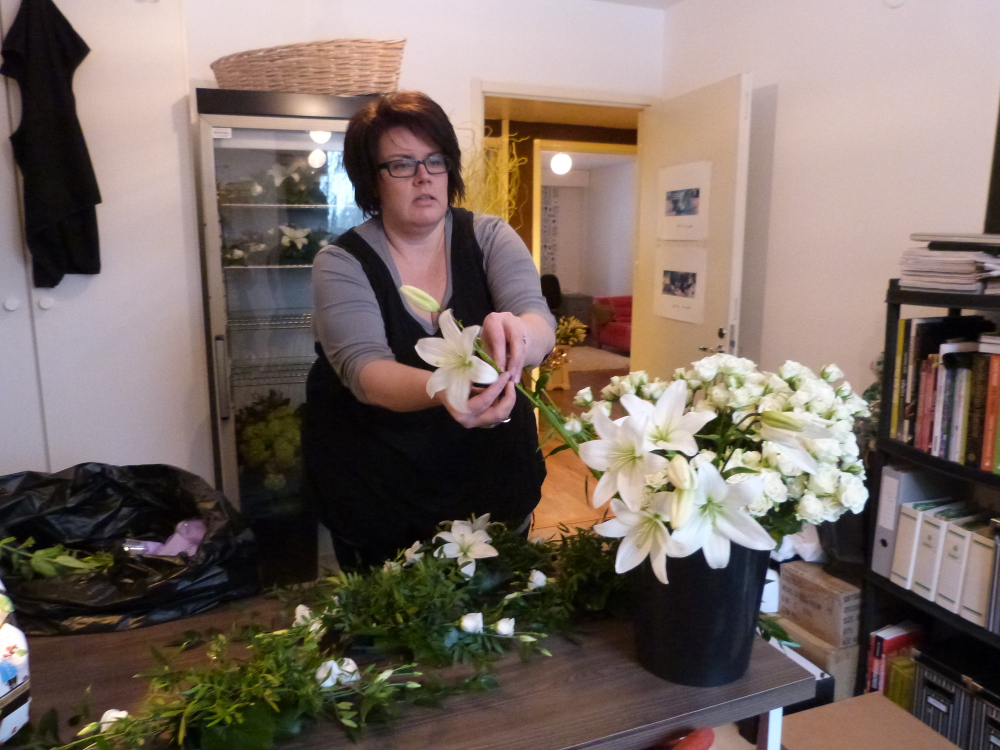Huomenna, päivää ennen häitä, Minna uurastaa hääkimpun ja vieheiden parissa. Lauantaina hän kuljettaa kaikki kukat hääpaikalle, jossa vielä työstää ja viimeistelee sekä asettelee kaiken paikoilleen, jotta kaikki olisi juuri niin kun hääparin kanssa suunniteltiin. Vaikka työ kukkien parissa vaatii hienomotoriikka, niin kyllä floristin työ edellyttää myös aimo annosta logistiikkaosaamista. Ja itse asiassa siinä yhdistyvät hyvän floristin ja hyvän viheraluepuutarhurin osaamisvaatimukset.